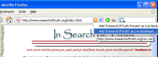The first three feeds can be monitored with most RSS readers, or even some web-browswers (Firefox partial screen shot), which will keep you current with all the latest changes on our sites. The two audio feeds are primarily intended to be used with Apple’s iTunes, since they are formatted as “podcasts”.